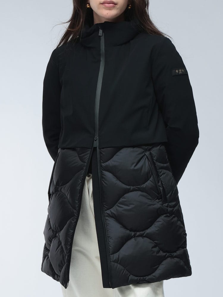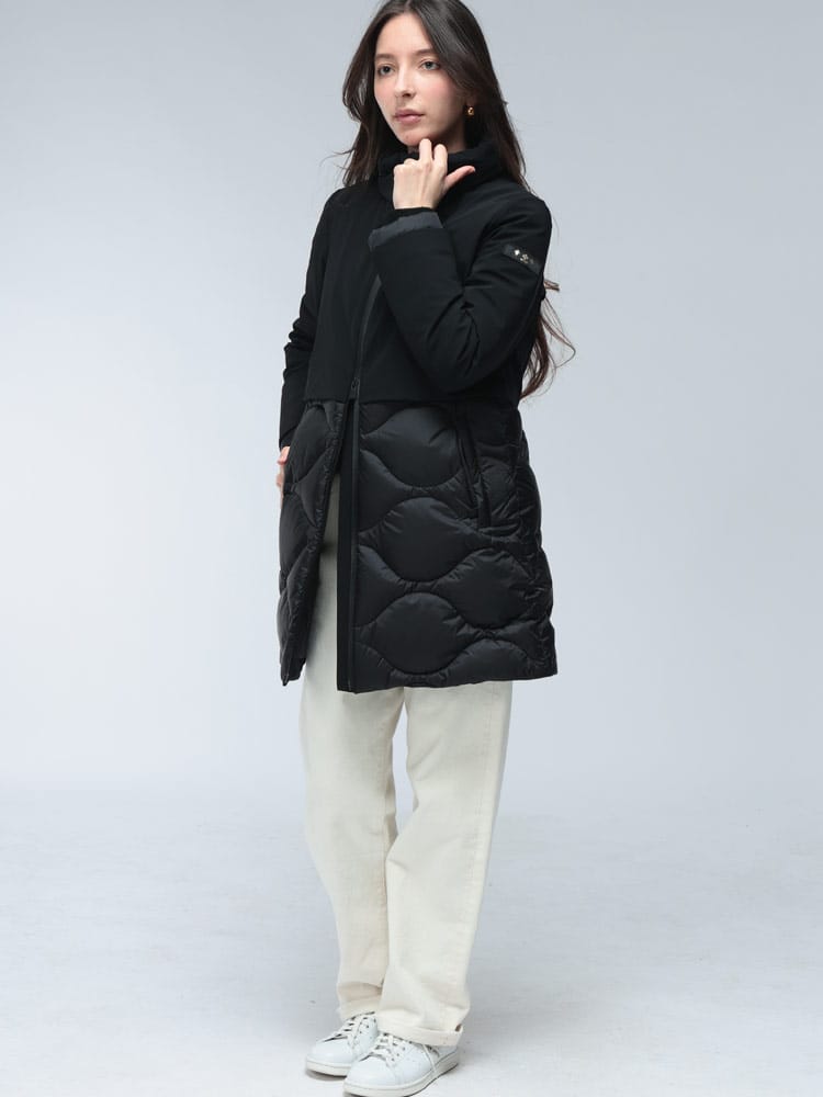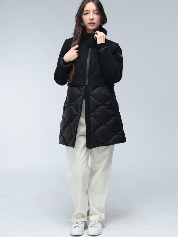 ダウンコートFESTUCAは、ダウンとジャージ素材を組み合わせた異素材コンビが特徴のスタイリッシュなアイテムです。袖や背中に使用されたストレッチジャージが、抜群の動きやすさと快適な着心地を実現。スタンドカラーのフルジップデザインで、防寒性も優れています。カジュアルながらも上品な印象で、幅広いシーンで活躍する洗練された一着です。