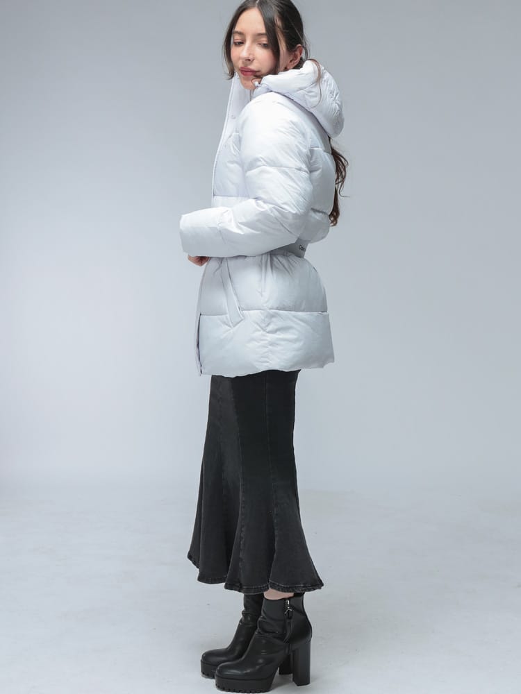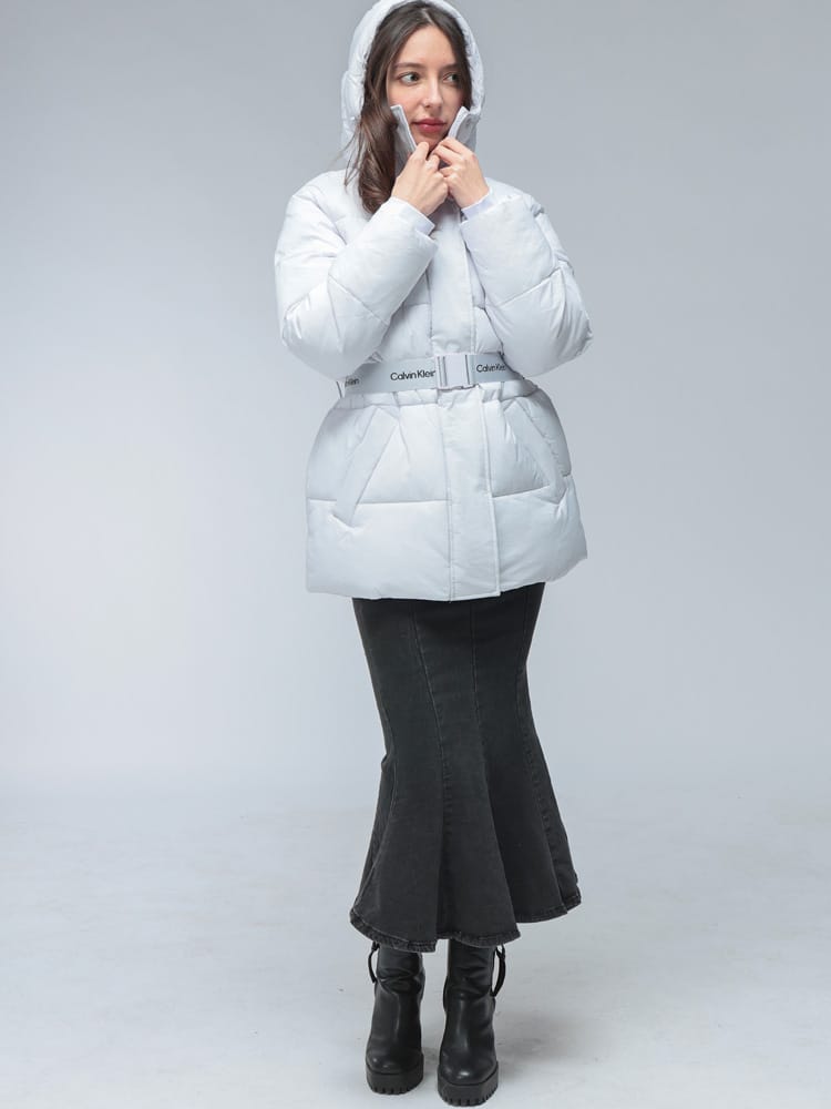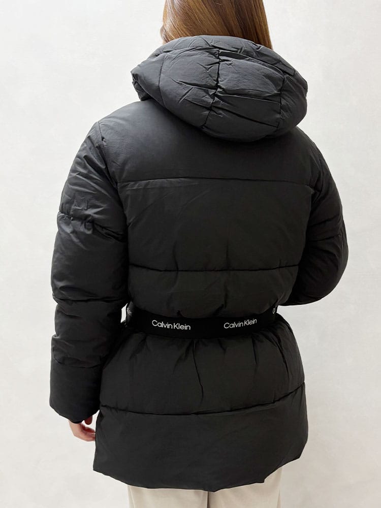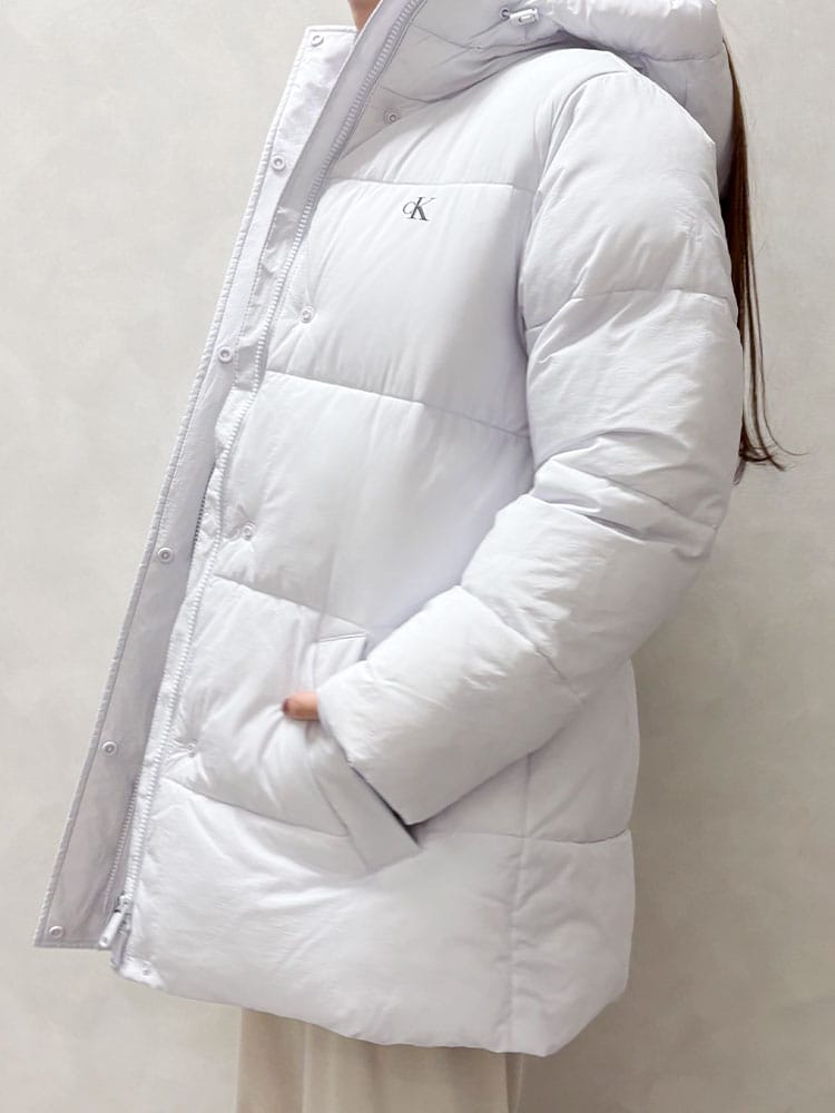 Calvin Kleinの都会的なスタイルを体現する、ミッドウェイトのミドル丈パファーコートです。軽やかな着心地ながらも十分な暖かさを提供します。着脱可能なフードと、シルエットを調整できるベルトが付属し、気分やシーンに応じた着こなしが可能。エレガントなミドル丈は動きやすさも兼ね備えており、寒い季節のデイリーユースをモダンに彩ります。