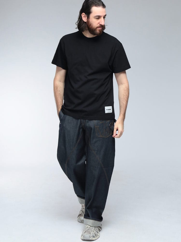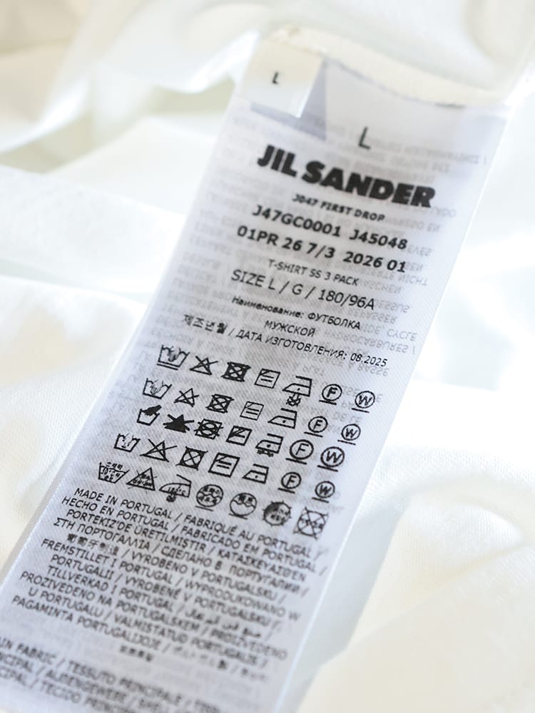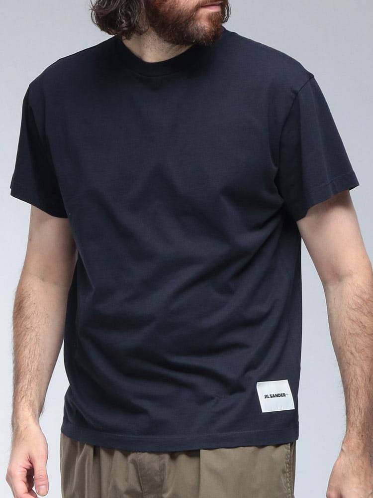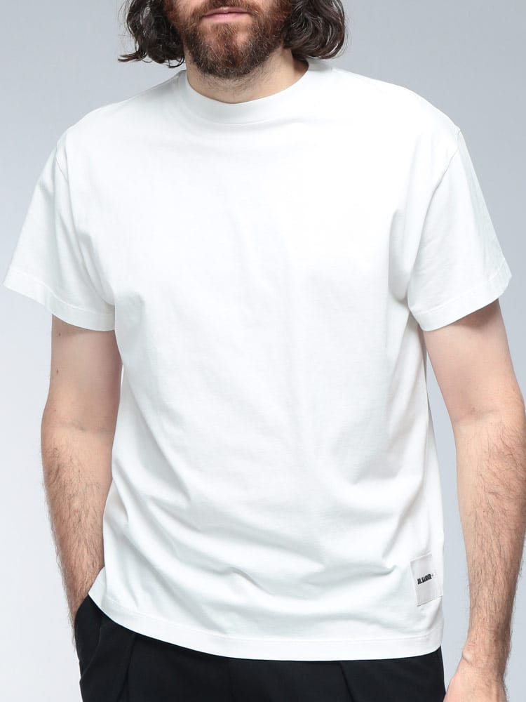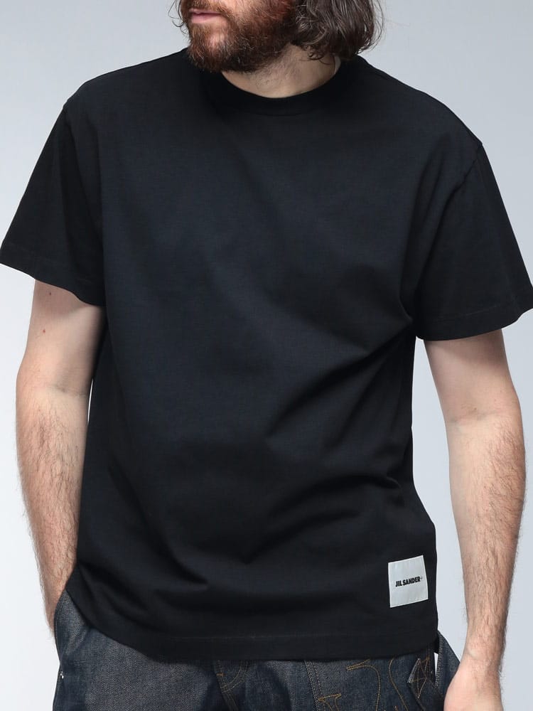 ミニマルに宿る個性、ロゴタグTシャツ。ミニマリズムを追求するJIL SANDER(ジルサンダー)が提案する、春夏のワードローブに欠かせない半袖Tシャツ。厳選された綿100%のコットン素材が生み出す、しなやかで上質な肌触りが特徴です。シンプルを極めたデザインの中に、裾部分にさりげなく配されたロゴタグが、ブランドのアイデンティティと静かな主張を放ちます。クラシックなクルーネックと、計算されたシルエットは、一枚で着るだけで洗練されたムードを醸し出します。本質的な美しさを求めるメンズ・男性に向けた、トレンドに左右されないタイムレスなトップスです。