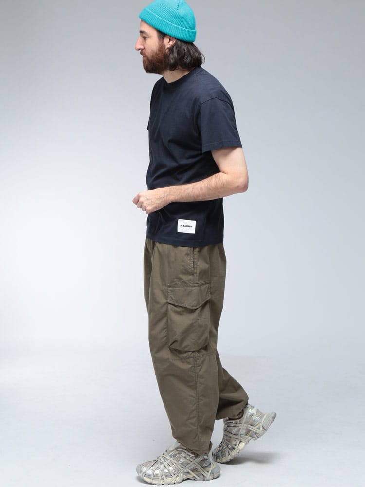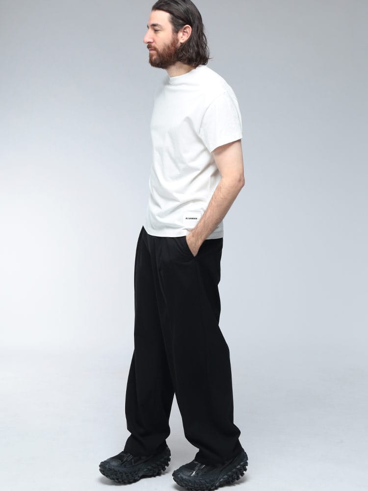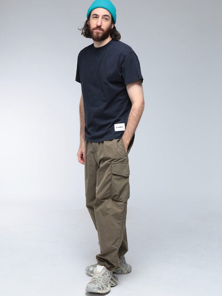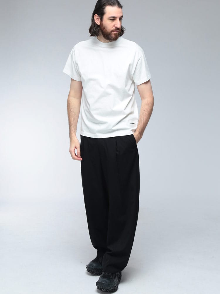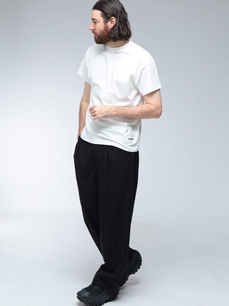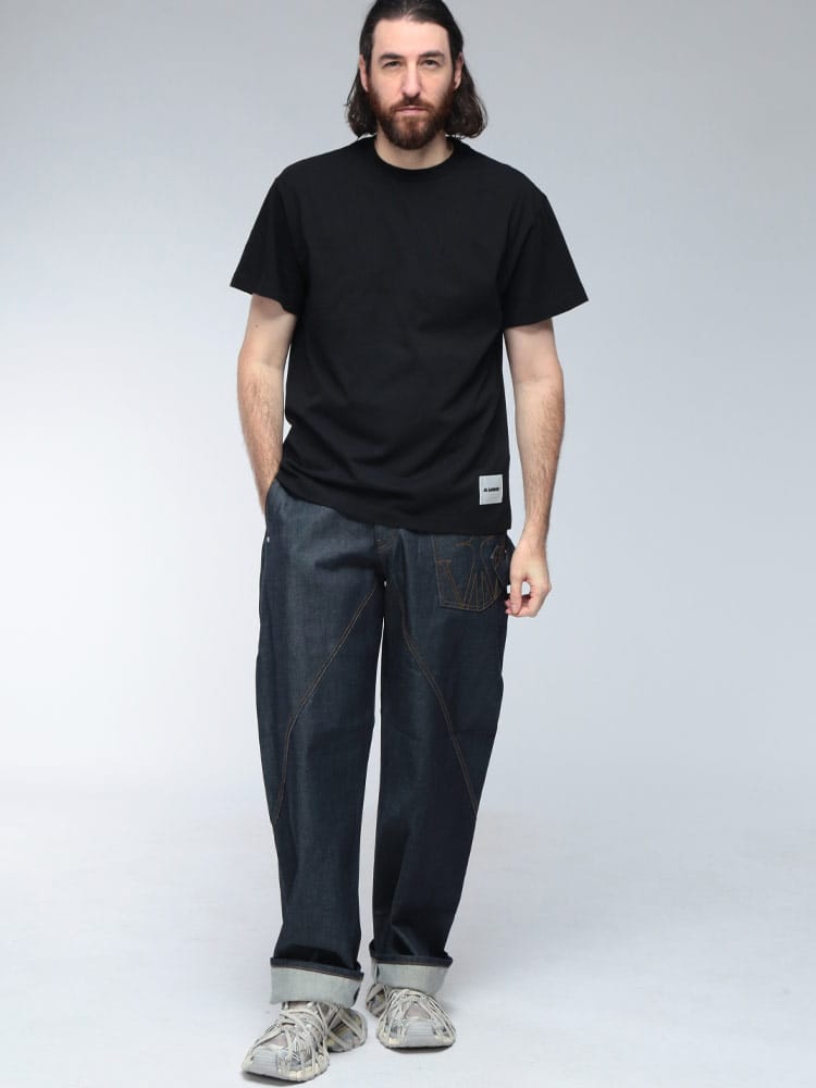 ミニマルに宿る個性、ロゴタグTシャツ。ミニマリズムを追求するJIL SANDER(ジルサンダー)が提案する、春夏のワードローブに欠かせない半袖Tシャツ。厳選された綿100%のコットン素材が生み出す、しなやかで上質な肌触りが特徴です。シンプルを極めたデザインの中に、裾部分にさりげなく配されたロゴタグが、ブランドのアイデンティティと静かな主張を放ちます。クラシックなクルーネックと、計算されたシルエットは、一枚で着るだけで洗練されたムードを醸し出します。本質的な美しさを求めるメンズ・男性に向けた、トレンドに左右されないタイムレスなトップスです。