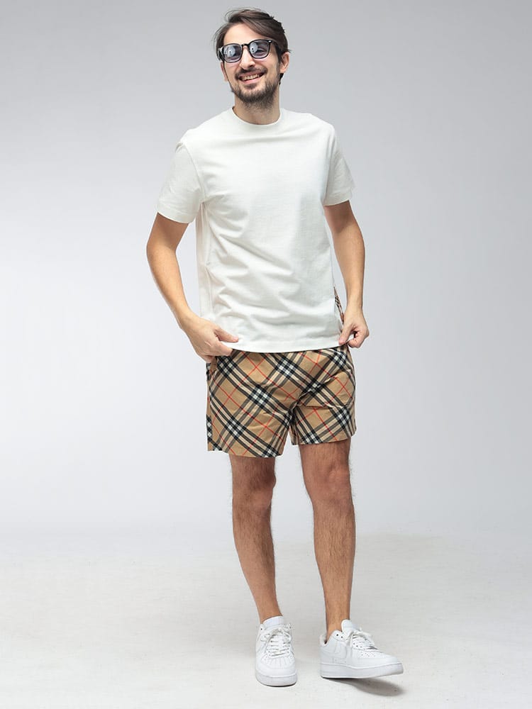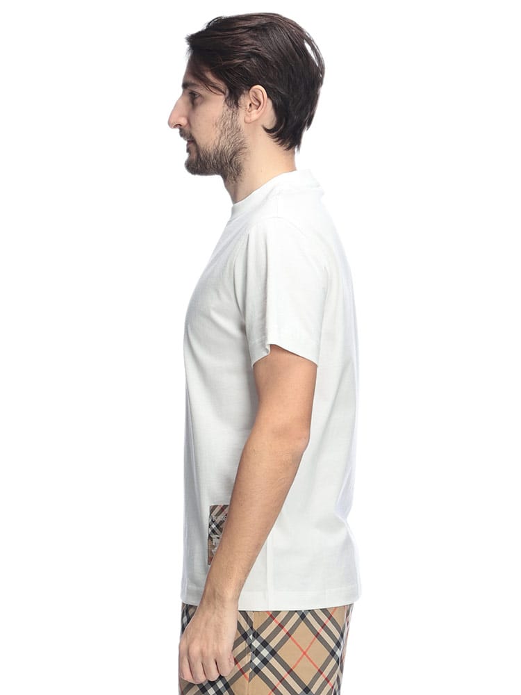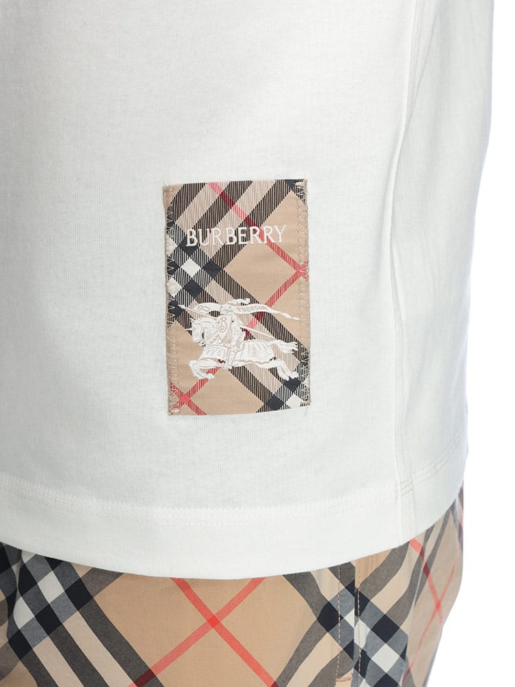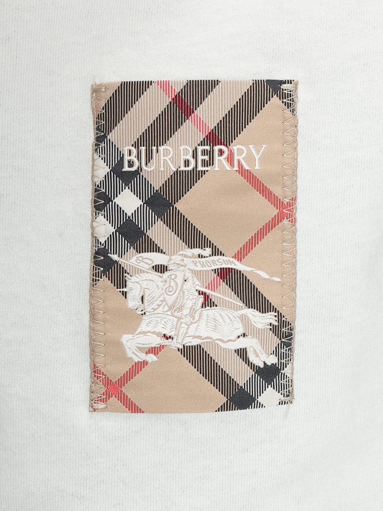 バーバリーの現代的な感性が光る、洗練されたコットンTシャツです。胸元にさりげなくあしらわれた、ブランドを象徴するヴィンテージチェックのラベルがアイコニックなアクセントを添えています。上質なコットン素材を使用した柔らかな肌触りと、程よくゆとりのあるシルエットが、日常の装いに上質なリラックス感をもたらします。