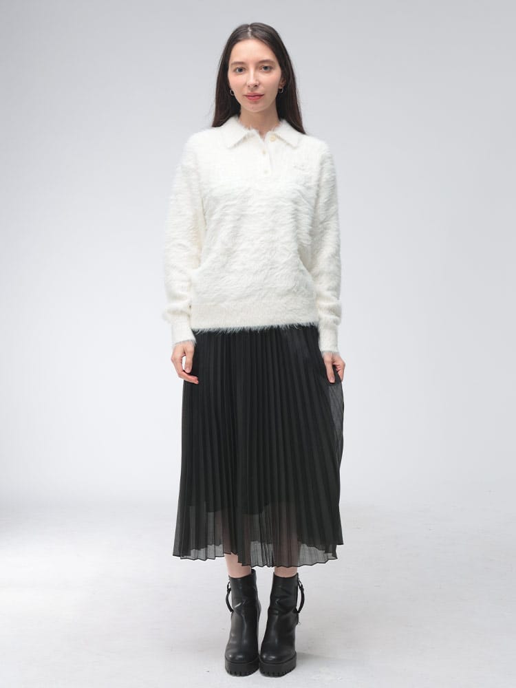 Calvin Klein(カルバンクライン)の魅力を凝縮した、柔らかな質感が目を引く長袖ニットポロシャツです。「FUZZY NOVELTY」シリーズ特有の、思わず触れたくなるようなファジーニット素材が、秋冬の装いに温もりとトレンド感をプラス。襟付きのデザインが顔周りを端正に見せつつ、程よいリラックス感を演出します。