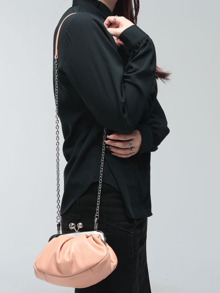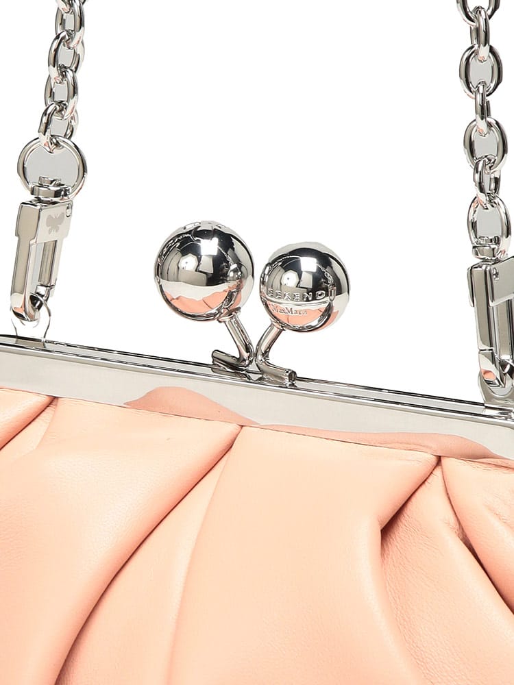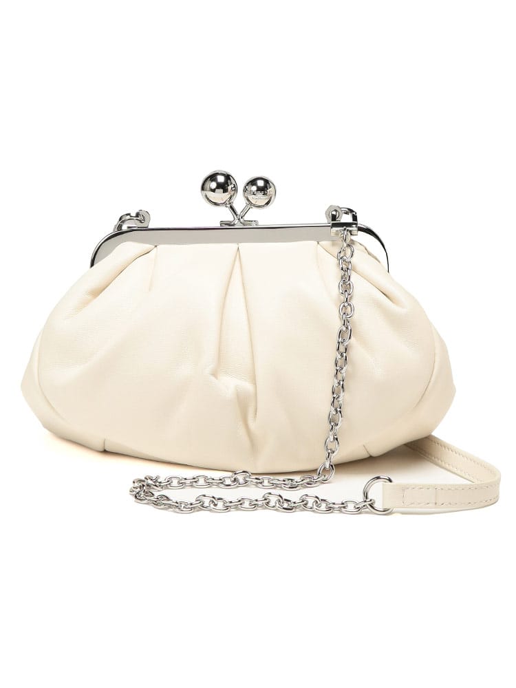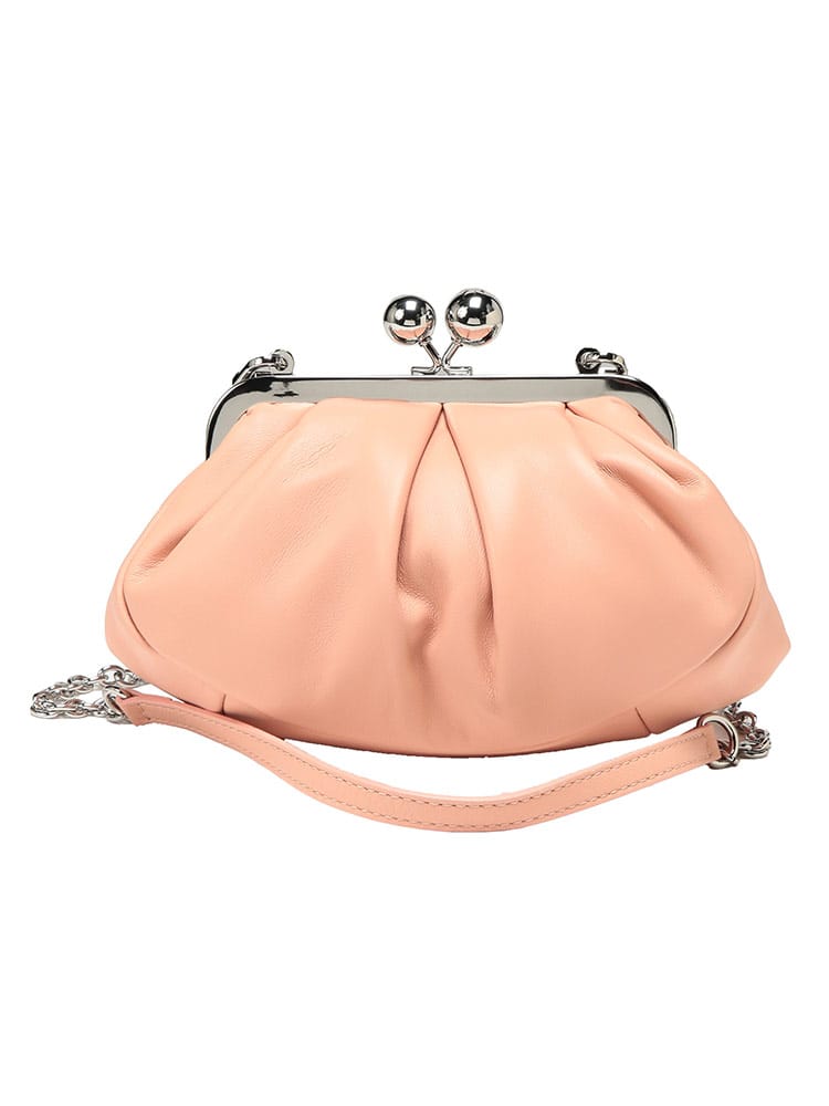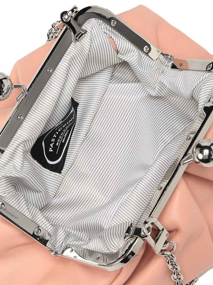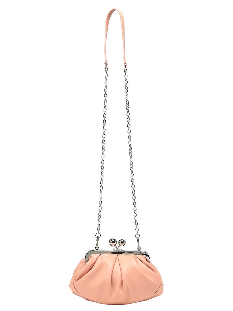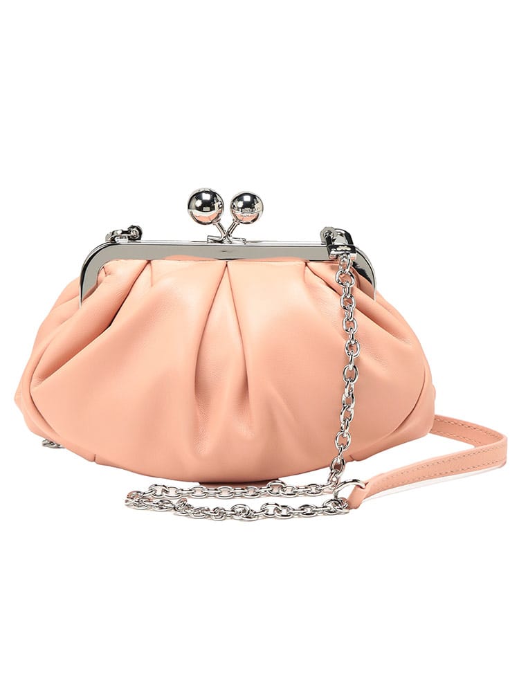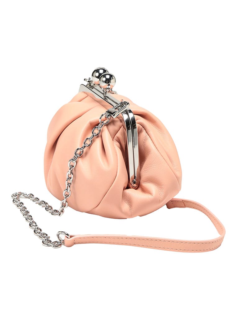 マックスマーラで愛され続ける「パスティチーノ」バッグのスモールモデル。厳選されたラムレザーの滑らかな質感と、がま口ならではの愛らしいフォルムが、装いにエレガントな華やぎを添えます。小ぶりながらも存在感があり、アクセサリー感覚で持てる絶妙なサイズ感が魅力。取り外し可能なストラップ付きで、ハンドバッグやショルダーバッグとしてスタイルに合わせた使い分けが可能です。大人の遊び心を形にした、極上の逸品です。