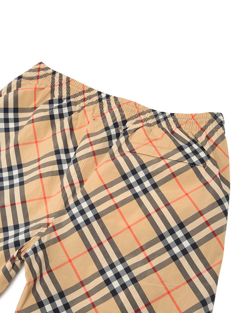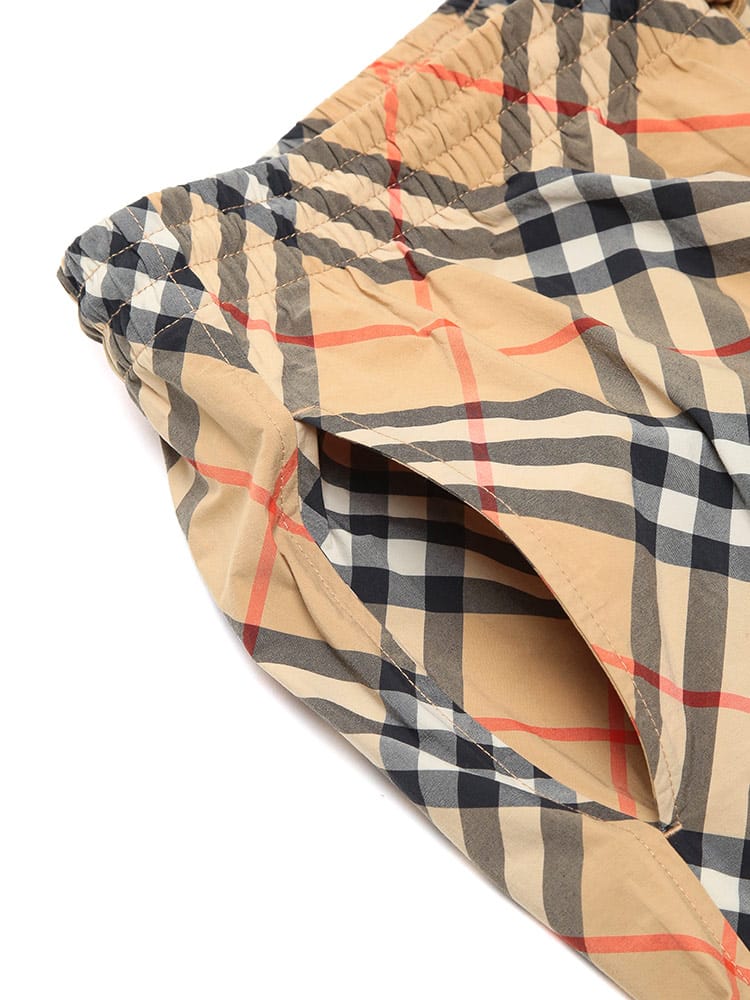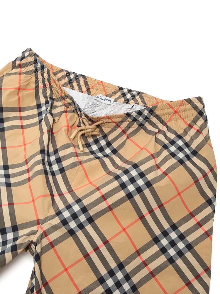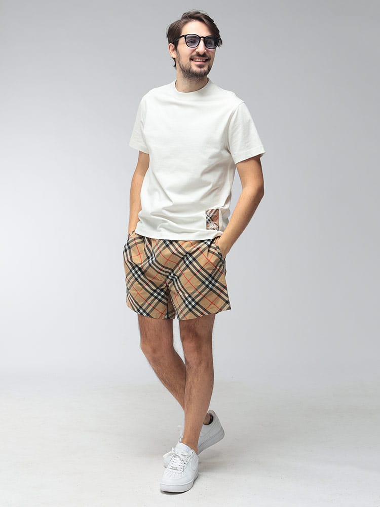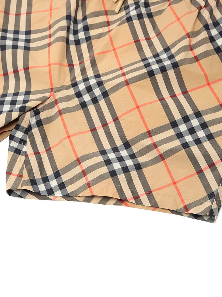 バーバリーのアイコニックなヴィンテージチェックを全面に落とし込んだ、気品漂うスイムショーツです。一目でそれと分かる伝統的な意匠が、ビーチやプールサイドでの装いをラグジュアリーに格上げします。速乾性に優れた素材と快適なメッシュライナーを採用しており、機能性も抜群。ドローコード付きのウエストでフィット感の調整も自在です。