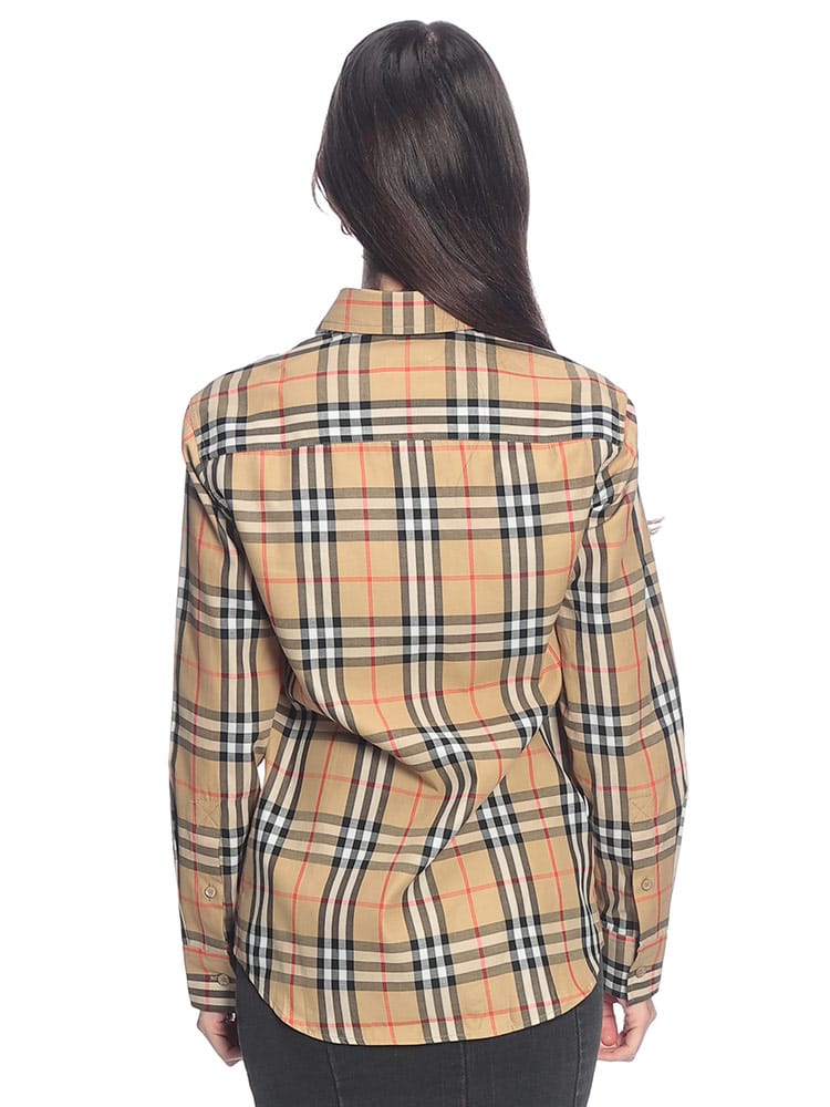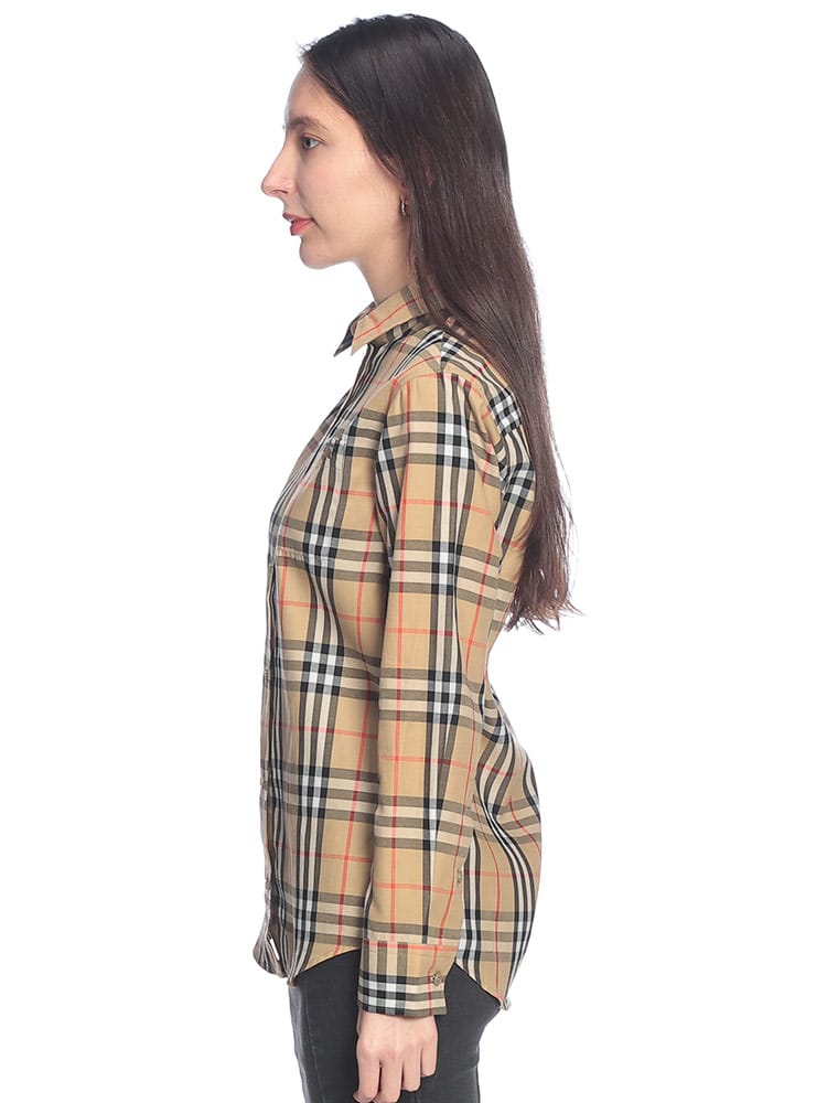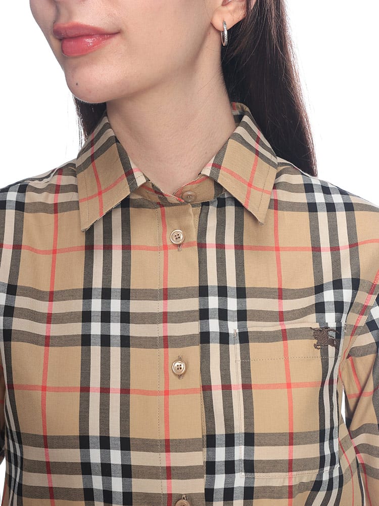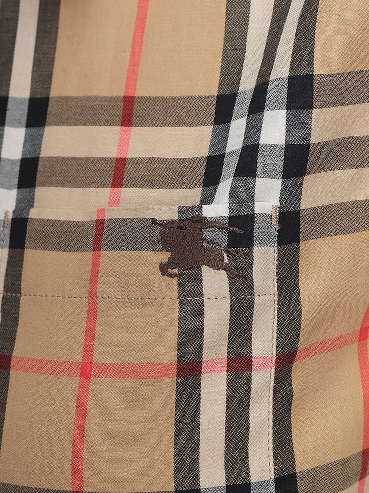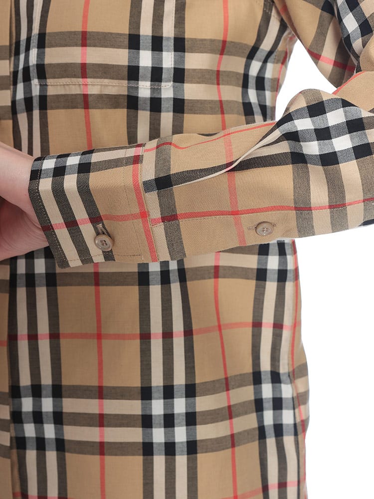 バーバリーを象徴するチェック柄を全面にあしらった、存在感あふれる長袖レギュラーカラーシャツ。伝統的なパターンに胸ポケットのアクセントが加わり、クラシックな品格とカジュアルな軽やかさを絶妙に融合させています。上質なコットン素材を使用した滑らかな肌触りは、一枚での着用はもちろん、羽織りとしても洗練されたシルエットを演出。