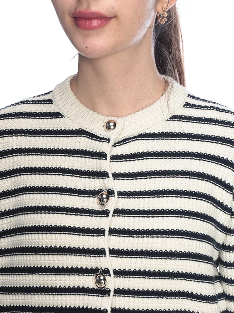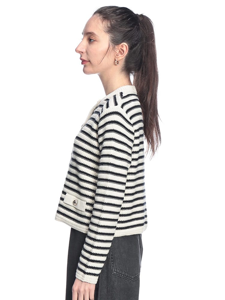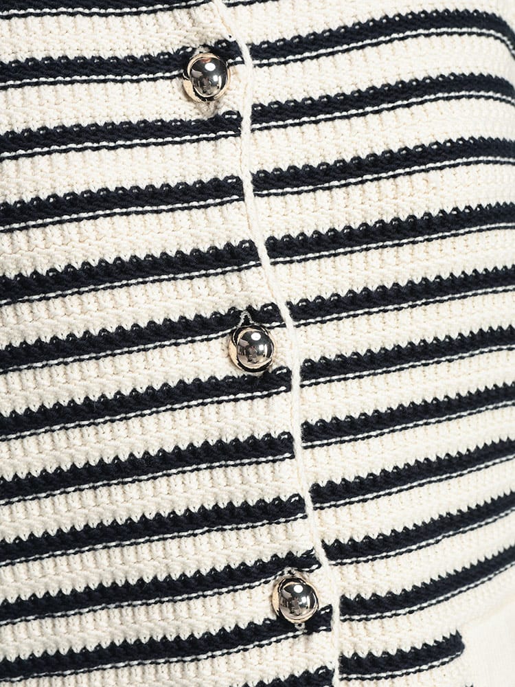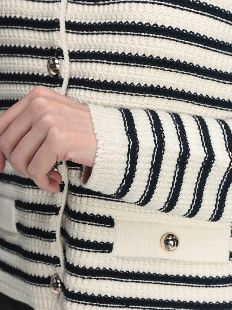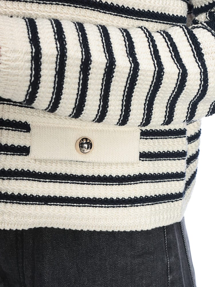 マックスマーラの洗練されたマリンスタイルを体現する、上品なボーダー柄のカーディガン「VODKA」です。選び抜かれた上質な素材を使用し、驚くほど滑らかで軽やかな着心地を実現。クラシックなボーダーパターンが、装いに都会的なリズムと爽やかなアクセントを添えています。程よく体にフィットする美しいシルエットは、ボタンを閉じてプルオーバーのように着こなすのもおすすめ。時代に左右されない気品漂う一着です。