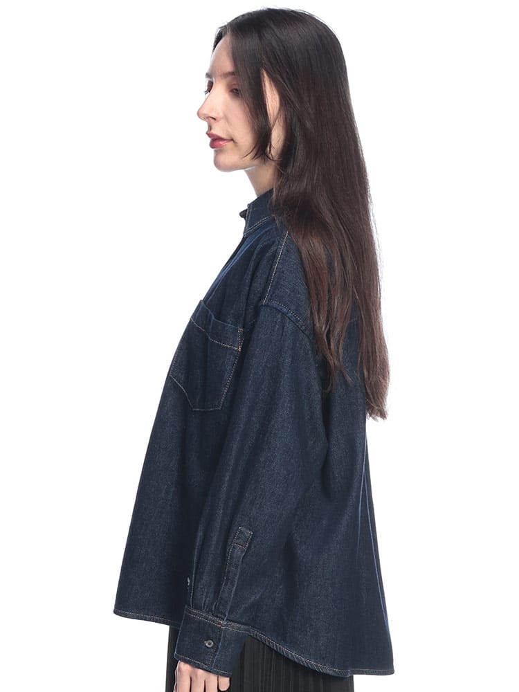 マックスマーラの洗練された美学をデニムに落とし込んだ、エレガントなデニムシャツ「FOGGIA」です。選び抜かれた上質なコットンデニムを使用し、カジュアルな素材感ながらもメゾンらしい気品漂う光沢と滑らかな肌触りを実現。程よくゆとりを持たせたシルエットが、現代的な抜け感と女性らしい優美なラインを演出します。一枚着としてはもちろん、羽織りとしても洗練された佇まいを完成させる、大人の日常をクラスアップする逸品です。