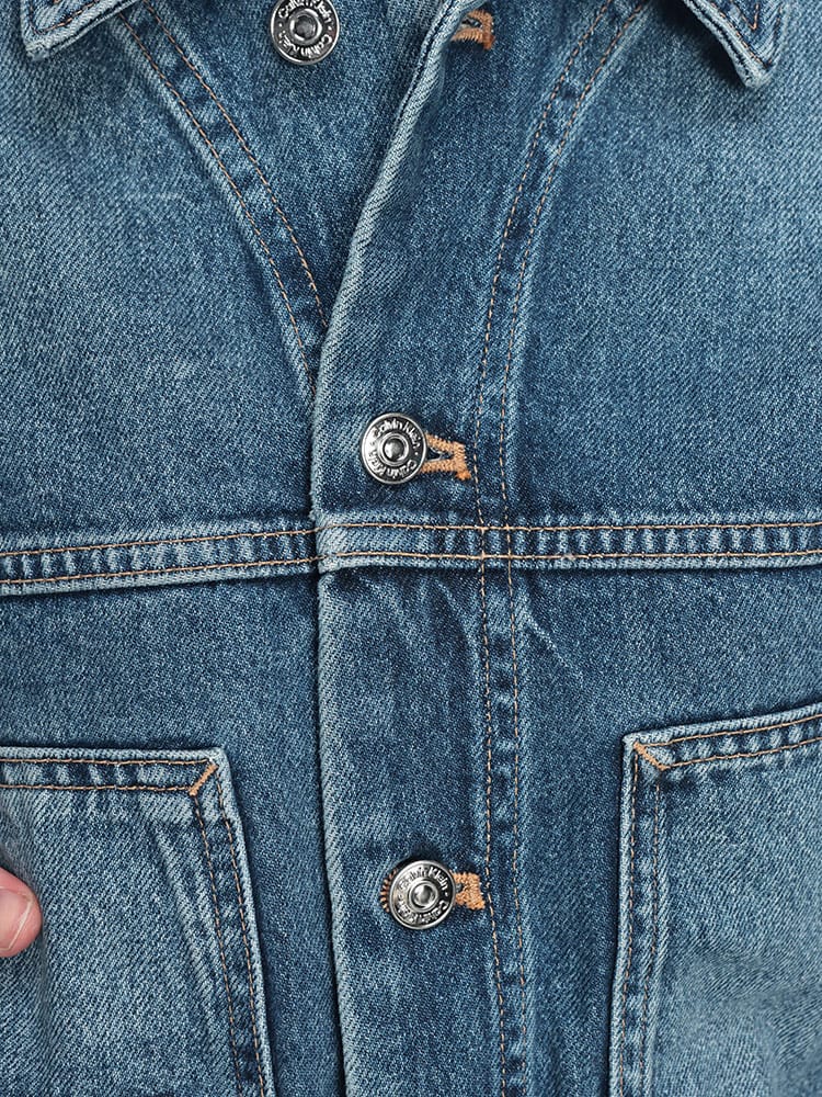 カルバン・クラインのアイコニックな美学を体現した、洗練されたデニムジャケットです。絶妙なフェード感の「SANDED BLUE」カラーが、都会的なヴィンテージムードを演出。上質なデニム素材を使用し、クラシックなトラッカースタイルのディテールを現代的なシルエットへと昇華させています。胸元のロゴがさりげなくブランドのアイデンティティを主張。時代に左右されない普遍的なデザインは、カジュアルな装いを一段上のスタイルへと導く、ワードローブの核となる一着です。