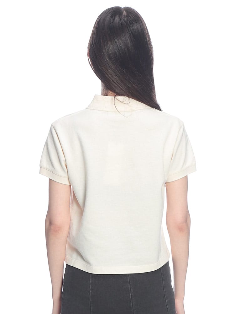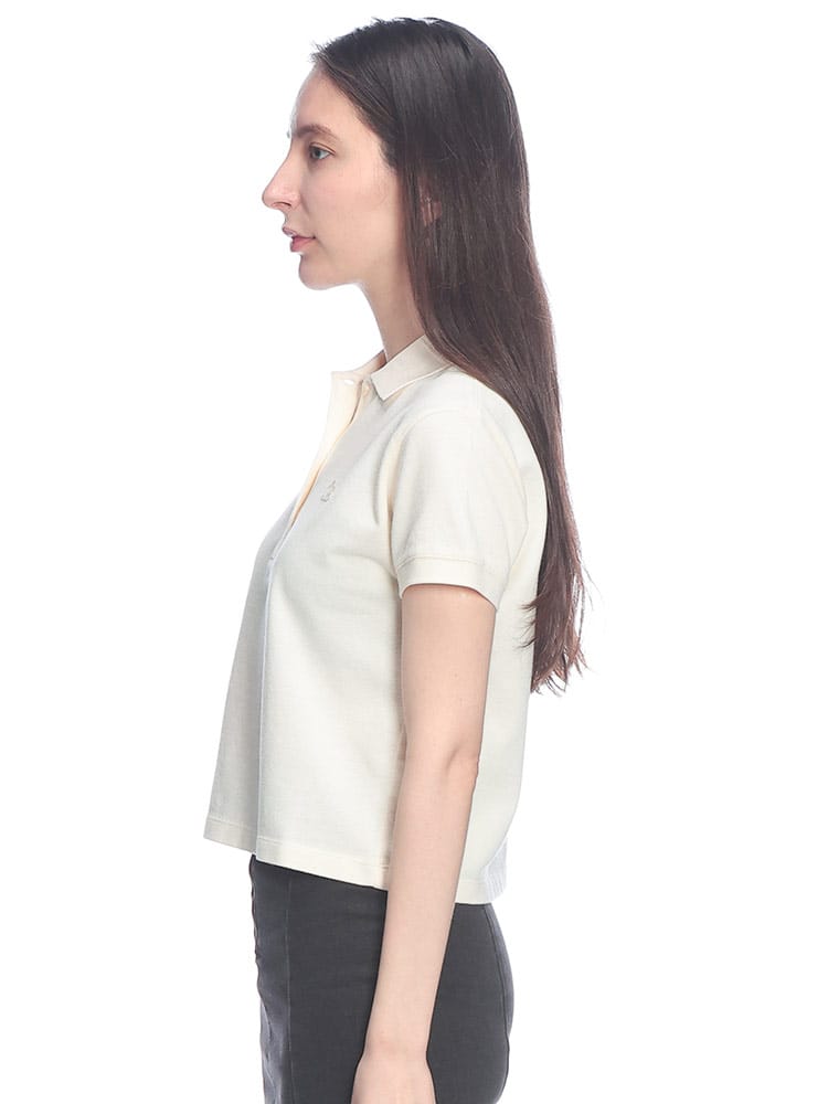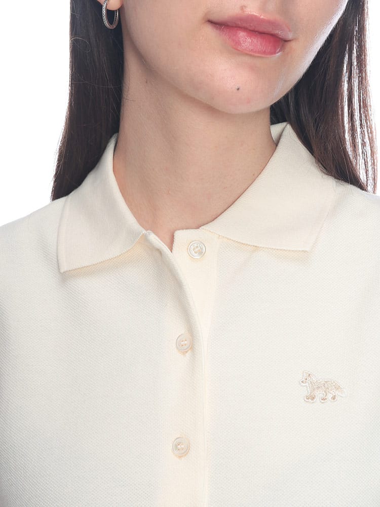 メゾン キツネの新アイコン「ベビーフォックス」のパッチが胸元に映える、半袖ポロシャツ。トレンド感溢れるクロップド丈を採用し、クラシックなスポーティスタイルに現代的な軽やかさと女性らしさをプラスしています。上質なコットンピケ素材を使用した清涼感のある肌触りは、春夏のデイリーユースに最適。