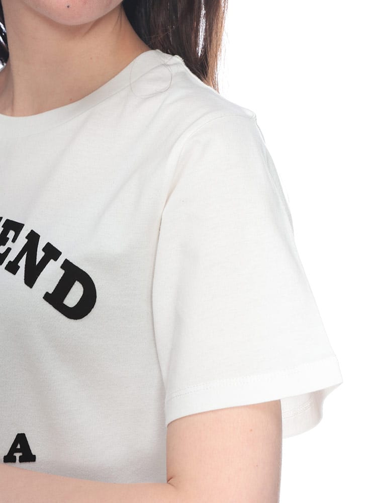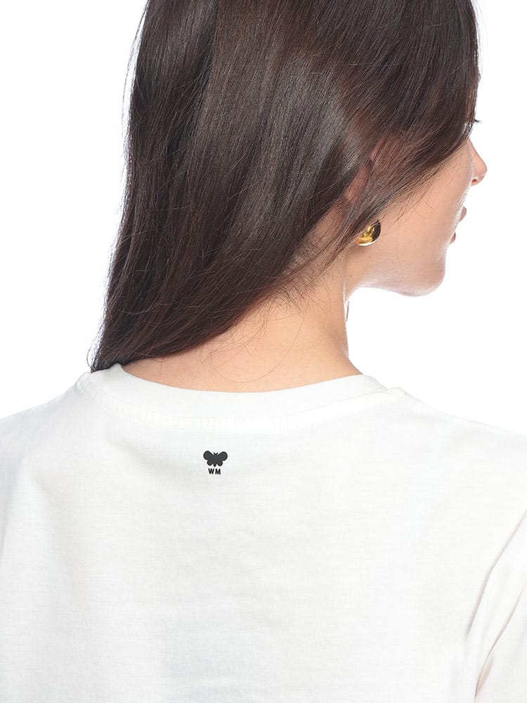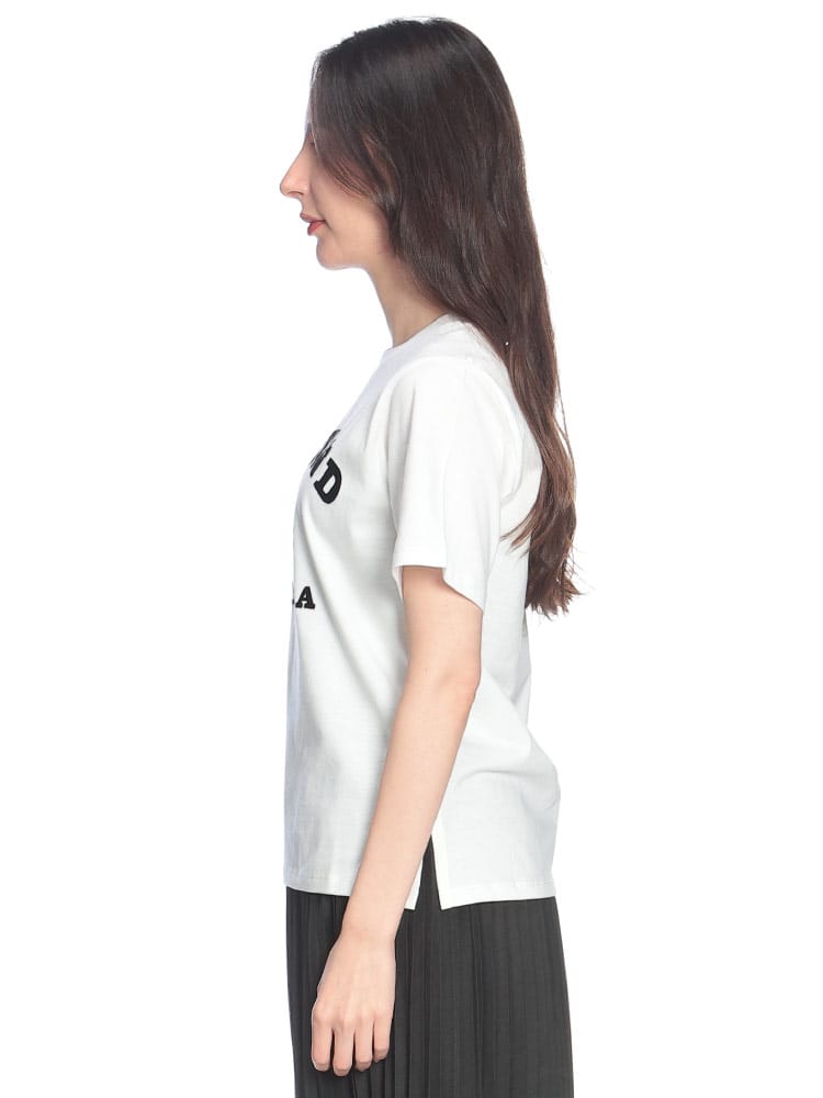洗練されたレタリングデザインのロゴプリントが、フロントにモダンなアクセントを添える半袖Tシャツです。上質なコットン素材を使用した柔らかな肌触りと、トレンド感のあるショート丈のバランスが、軽やかで都会的な着こなしを演出します。カジュアルなデニムから上品なロングスカートまで幅広いボトムスと相性が良く、スタイルアップも叶える一着。春夏シーズンのデイリースタイルを、クリーンに彩る汎用性の高いアイテムです。