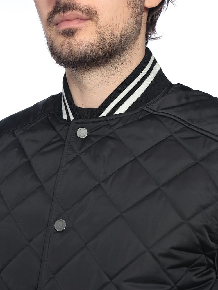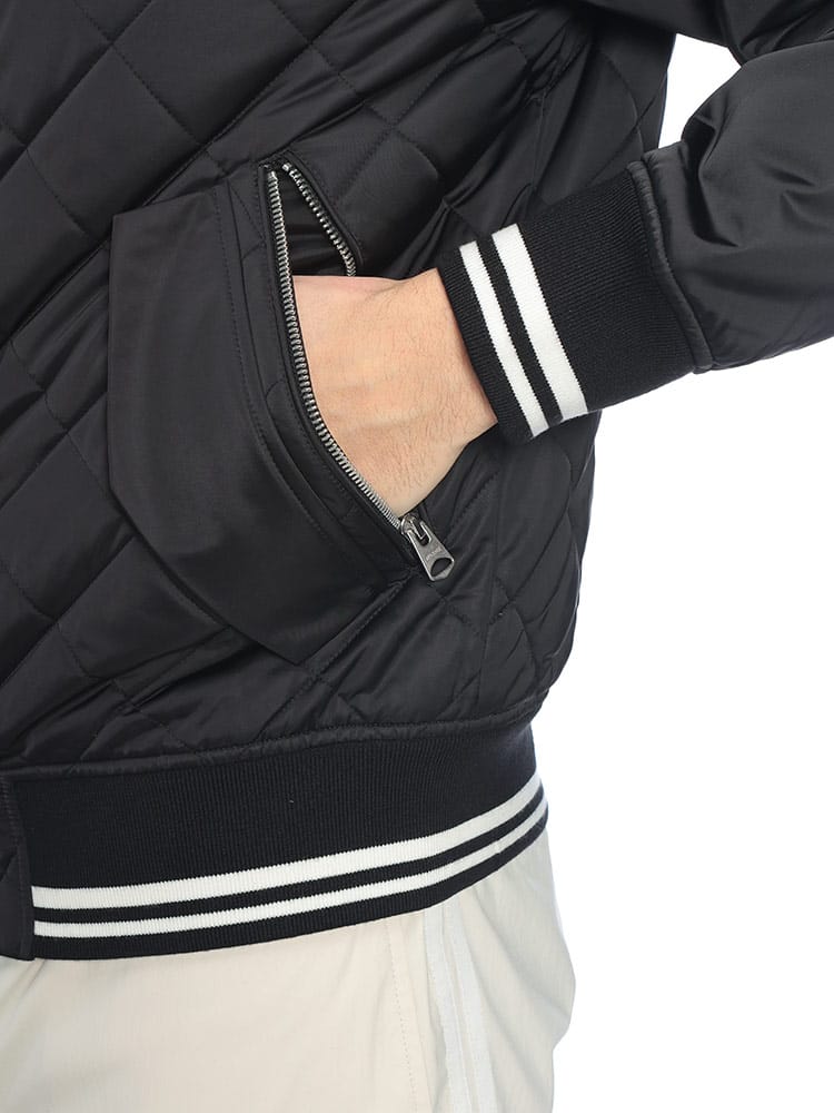洗練されたキルティングデザインが都会的な表情を見せる、マッカージュの中綿入りブルゾンです。MA-1のシルエットをベースに、ブランドらしいシャープなラインを効かせ、秋から冬にかけての装いをスマートに演出します。中綿には軽量で保温性に優れた素材を採用し、リブ部分にはウール混素材を使用することで、冷気の侵入を防ぎつつ快適な着心地を実現。内外に計4つのポケットを備えた、機能美と実用性を兼ね備えた一着です。