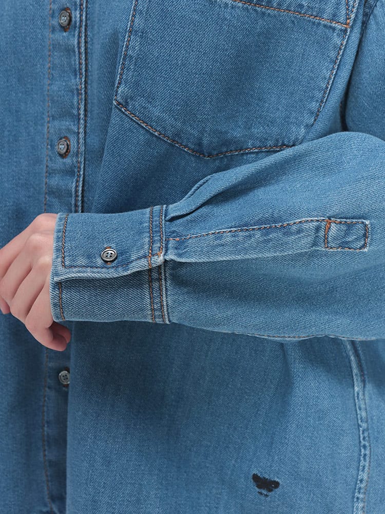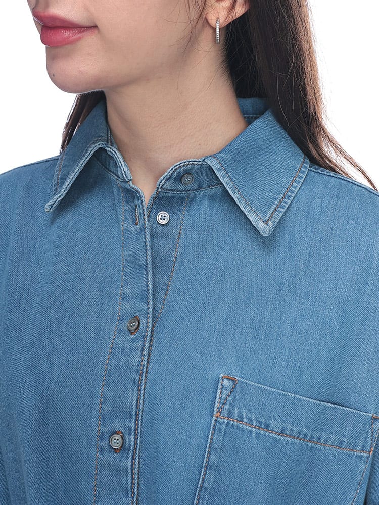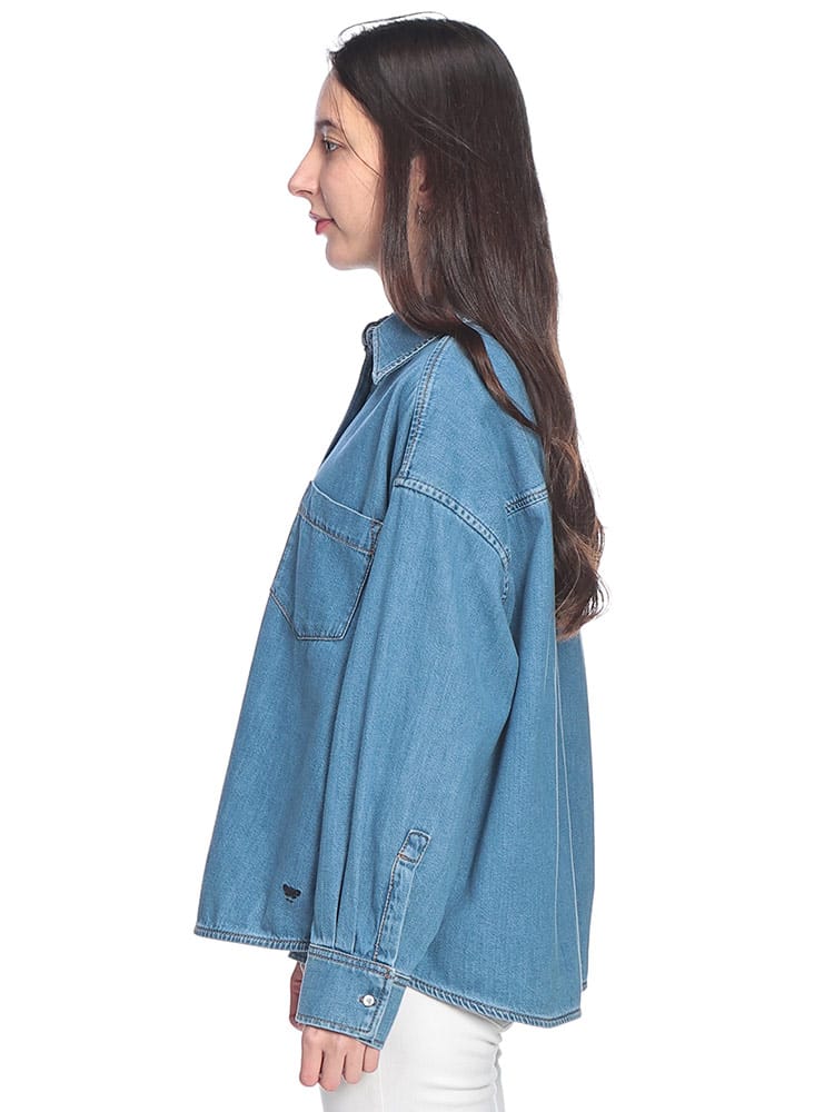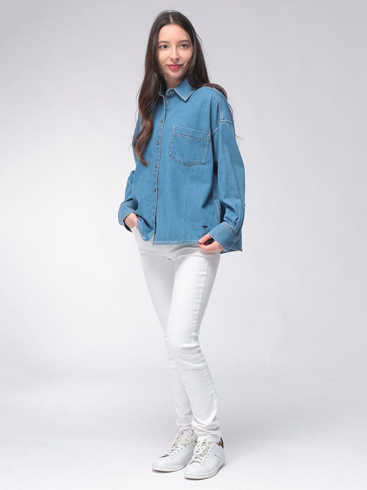 洗練されたカジュアルスタイルを象徴するデニムシャツは、大人のデイリーワードロープに欠かせない逸品です。柔らかく風合い豊かなデニム素材を使用した長袖デザインで、春夏の軽やかな羽織りから秋のインナー使いまでロングシーズン活躍します。胸元には利便性とアクセントを兼ね備えた外側ポケットを1つ配置し、ミニマルながらも表情のある仕上がりに。程よくゆとりのあるシルエットが女性らしい抜け感を演出し、ボタンを留めても開けても綺麗に決まります。イタリアブランドらしい上品な仕立てとヴィンテージライクな表情が融合した、品格漂うトップスです。デニムオンデニムやスカートスタイルなど、自由な着こなしを楽しめる万能な一枚。