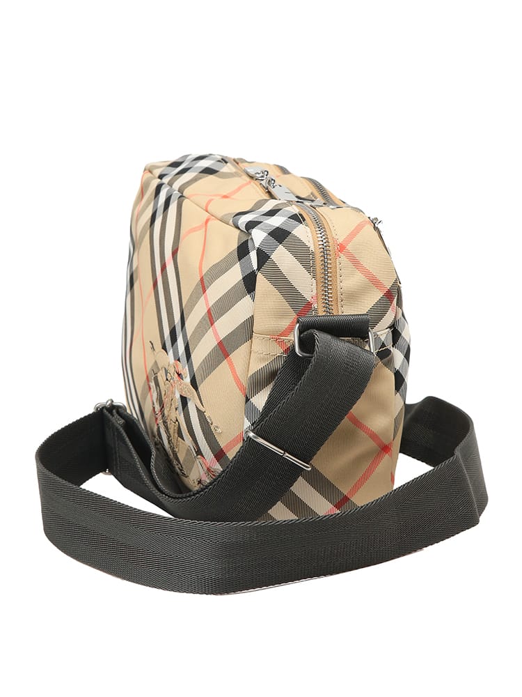 バーバリーを象徴するチェック柄に、モダンなブランドロゴを配した洗練されたデザインのボディバッグです。コンパクトなサイズ感ながら、スマートフォンや財布などの必需品をスマートに収納でき、デイリーユースから旅行のサブバッグまで幅広く活躍します。耐久性のある素材と調整可能なストラップにより、使い心地も快適。コーディネートのアクセントとして、カジュアルな装いに英国らしい上品さをプラスしてくれるアイテムです。