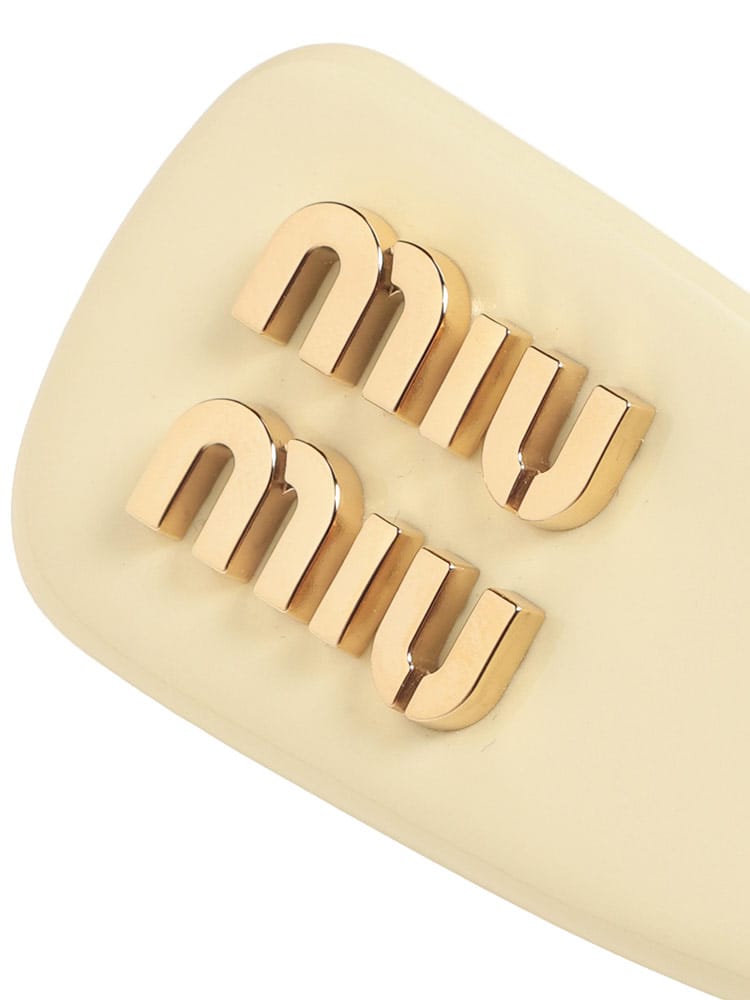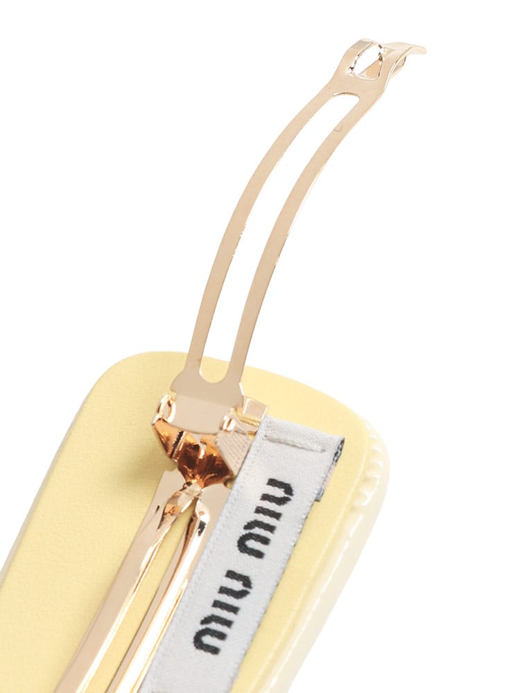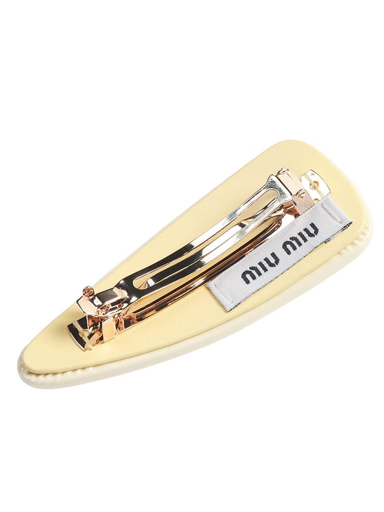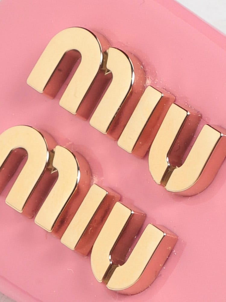 艶やかな光沢を放つパテントレザーを使用した、洗練された表情のヘアクリップです。アイコニックなブランドロゴがアクセントとなり、ミュウミュウらしい遊び心とフェミニンな魅力を引き立てます。シンプルなヘアスタイルに一点添えるだけで、装い全体をモダンで華やかな印象にアップデート。デイリーユースはもちろん、特別な日のコーディネートにも最適で、大切な方へのギフトとしても喜ばれるアクセサリーです。