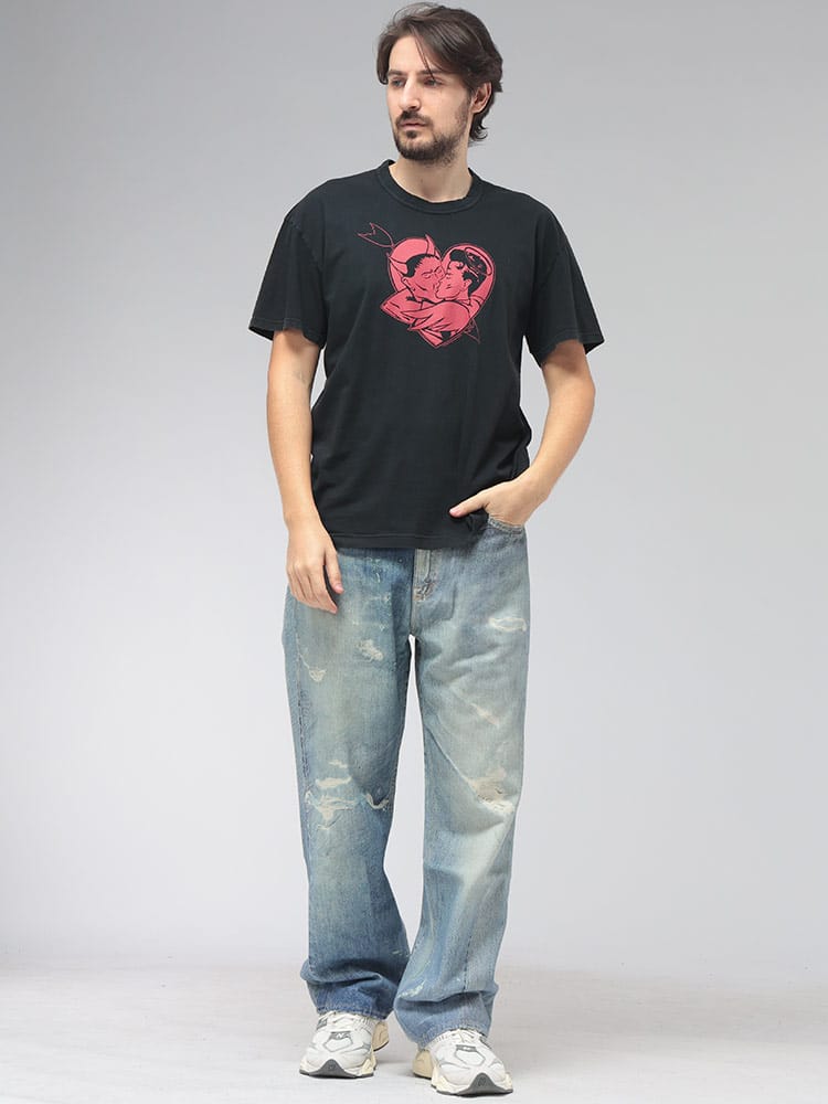 独自のストーリー性を纏った「Love Story Print」半袖Tシャツが登場。フロントに施されたアーティスティックなプリントは、ヴィンテージのような風合いと現代的なモード感を融合させた、ブランドらしいウィットに富んだデザインです。厳選された上質なコットンを使用し、肌に馴染む柔らかな質感と優れた通気性を実現。春夏のメインアイテムとして、一日中快適な着心地を提供します。計算されたクルーネックのラインと、程よくゆとりを持たせたシルエットが、エフォートレスで洗練された佇まいを演出。一枚で圧倒的な存在感を放つのはもちろん、シャツやジャケットのインナーとしてグラフィックを覗かせるスタイリングもおすすめです。素材選びからプリントの細部にまでこだわり抜かれた、感度の高い大人の遊び心を刺激する究極のカットソーです。