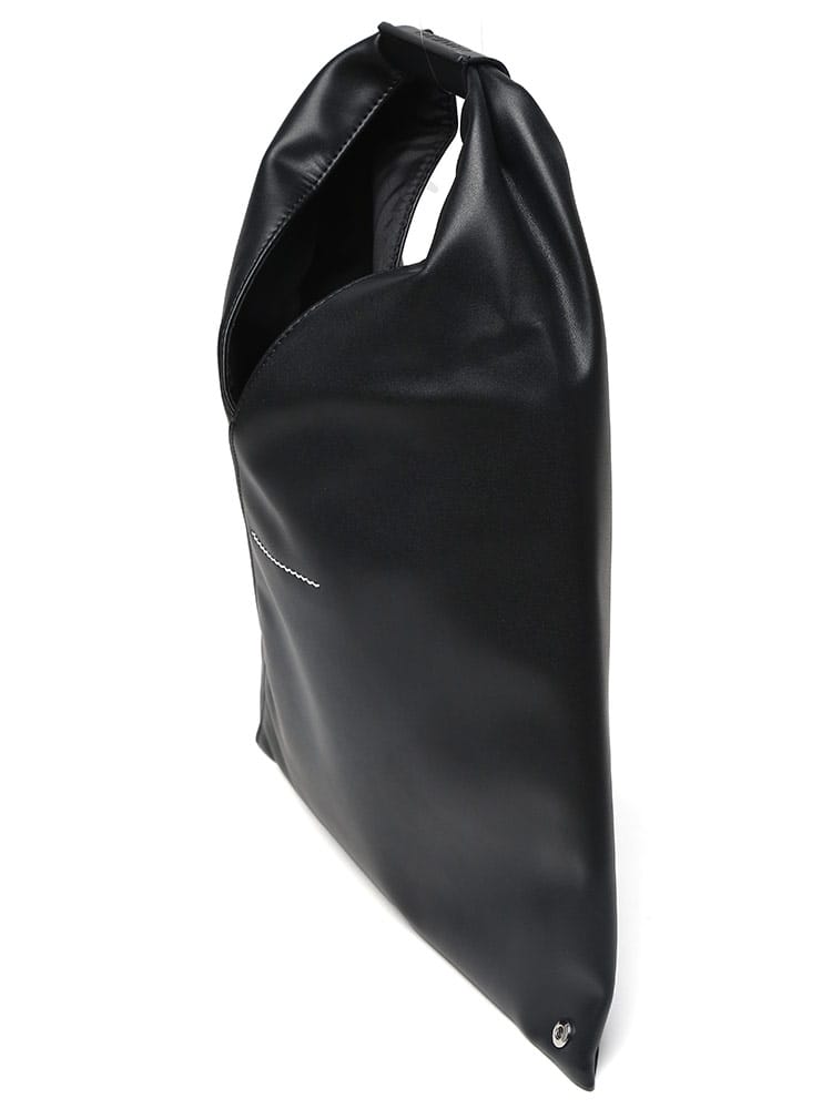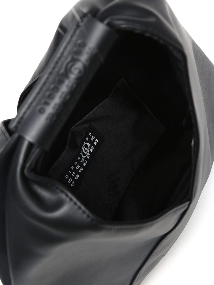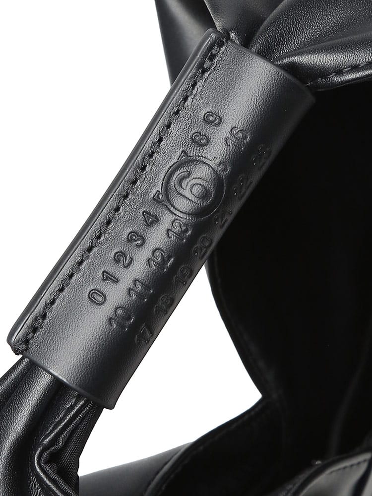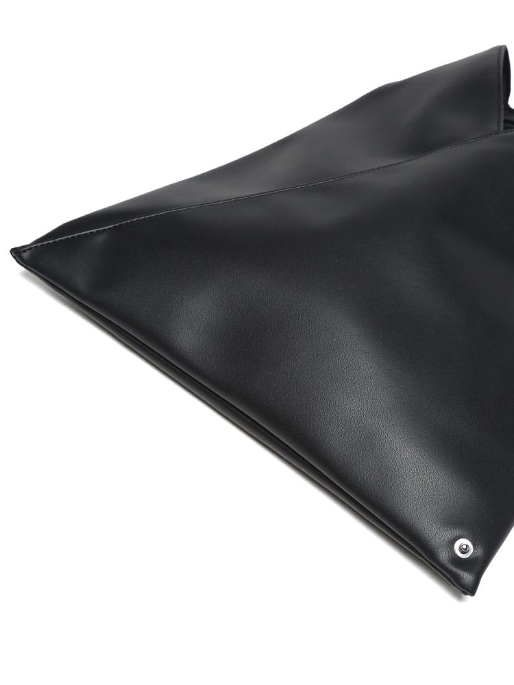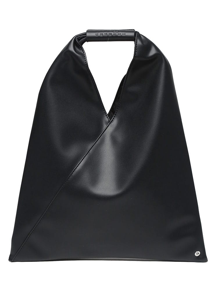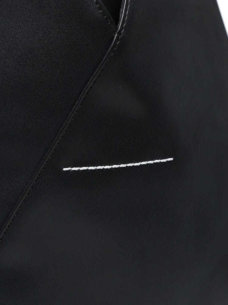 PUレザーを使用した「ジャパニーズ」バッグ クラシック ミニ。2009年秋冬コレクションで初めて発表された「ジャパニーズ」バッグは、その後MM6を象徴するアクセサリーとなりました。特徴的な三角形のシルエットは、日本の折り紙からインスパイアされたもの。