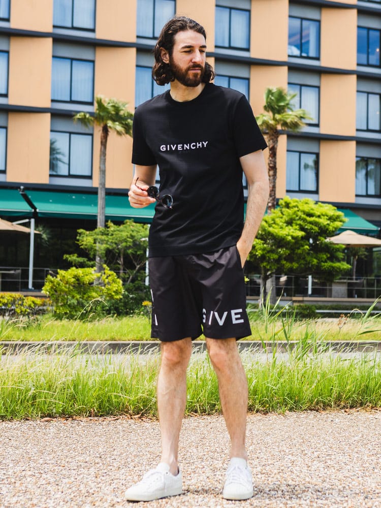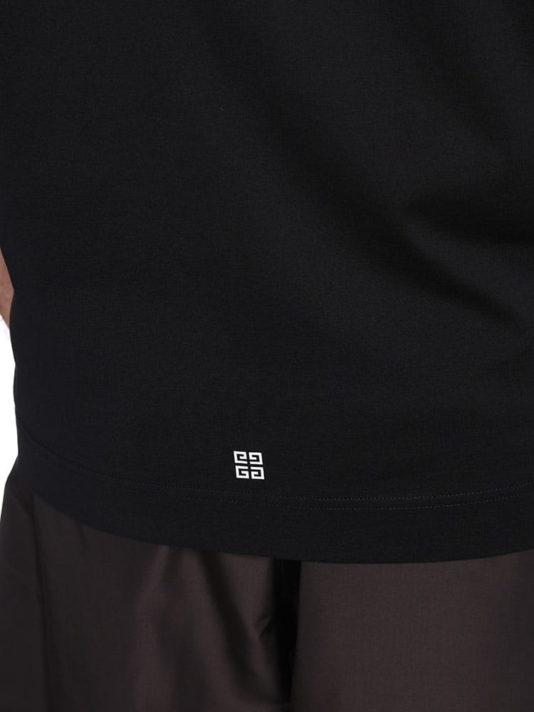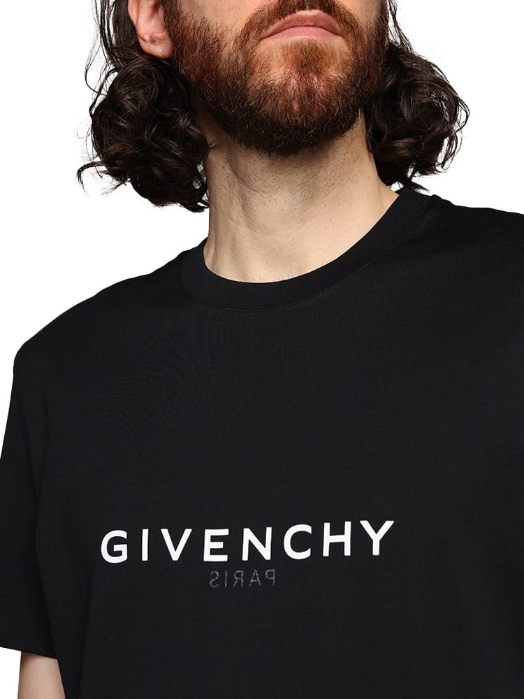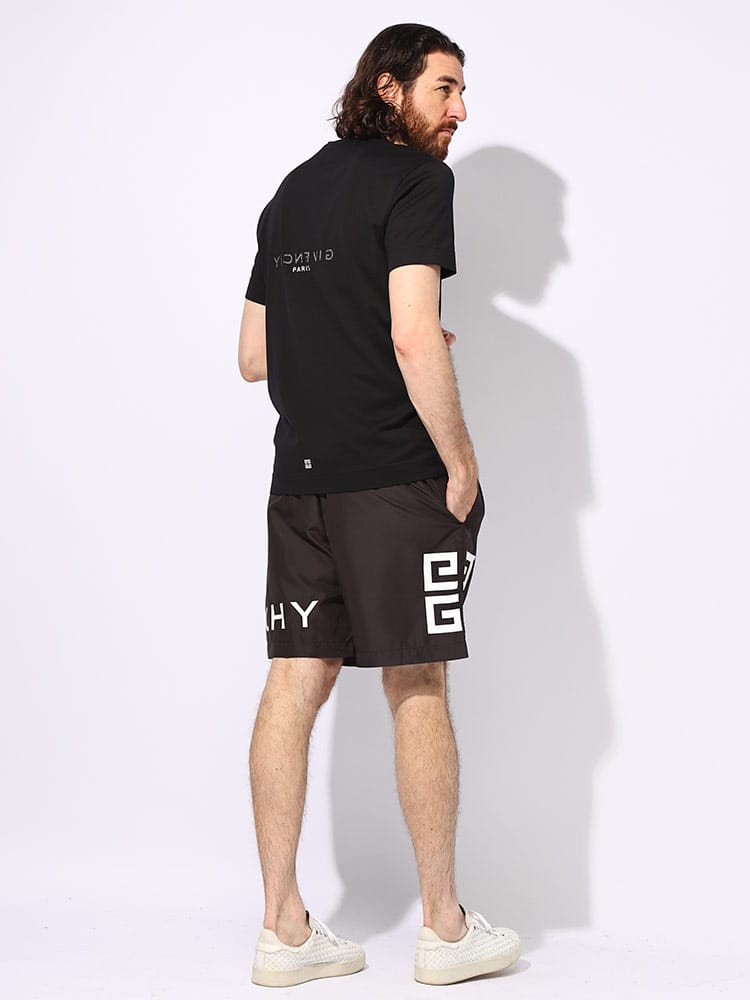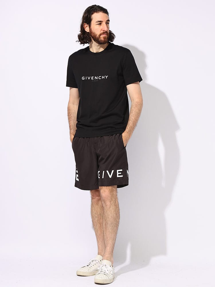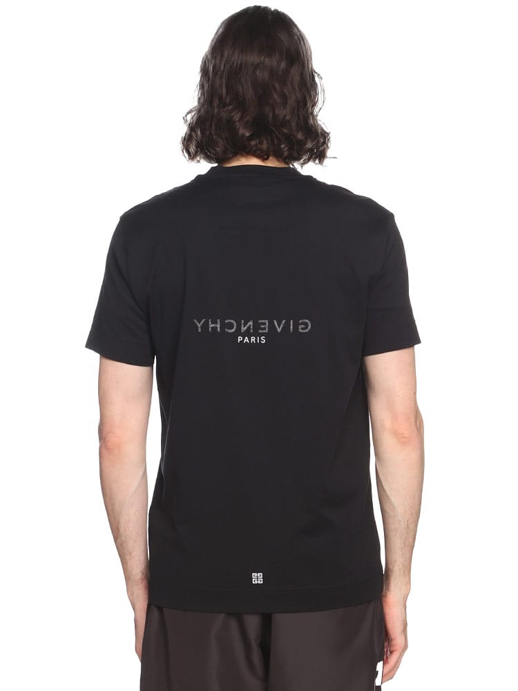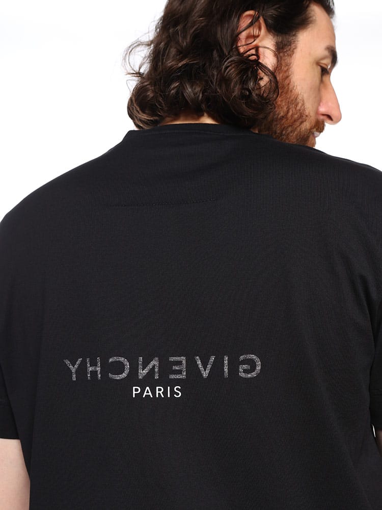 GIVENCHYのリバースロゴクルーネック半袖Tシャツ。リバースロゴが大胆かつ個性的なアクセントとなり、シンプルながらも存在感のある一枚に仕上がっています。スリムフィットのシルエットがスタイリッシュで、カジュアルなコーディネートにぴったりです。