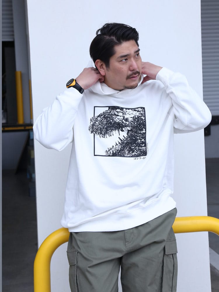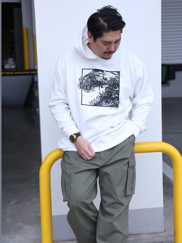 ゴジラ70周年記念作品『ゴジラ-1.0』と、サカゼンのコラボレーションアイテム。ゴジラの迫力を最大限に引き出したインパクトのあるデザインをモノトーンプリントしたスウェットパーカー。サイズ展開は、大きいサイズの7L相当まであり、オーバーサイズでの着用もオススメ。SAKAZEN 限定販売の特別なコラボレーションアイテムを是非。